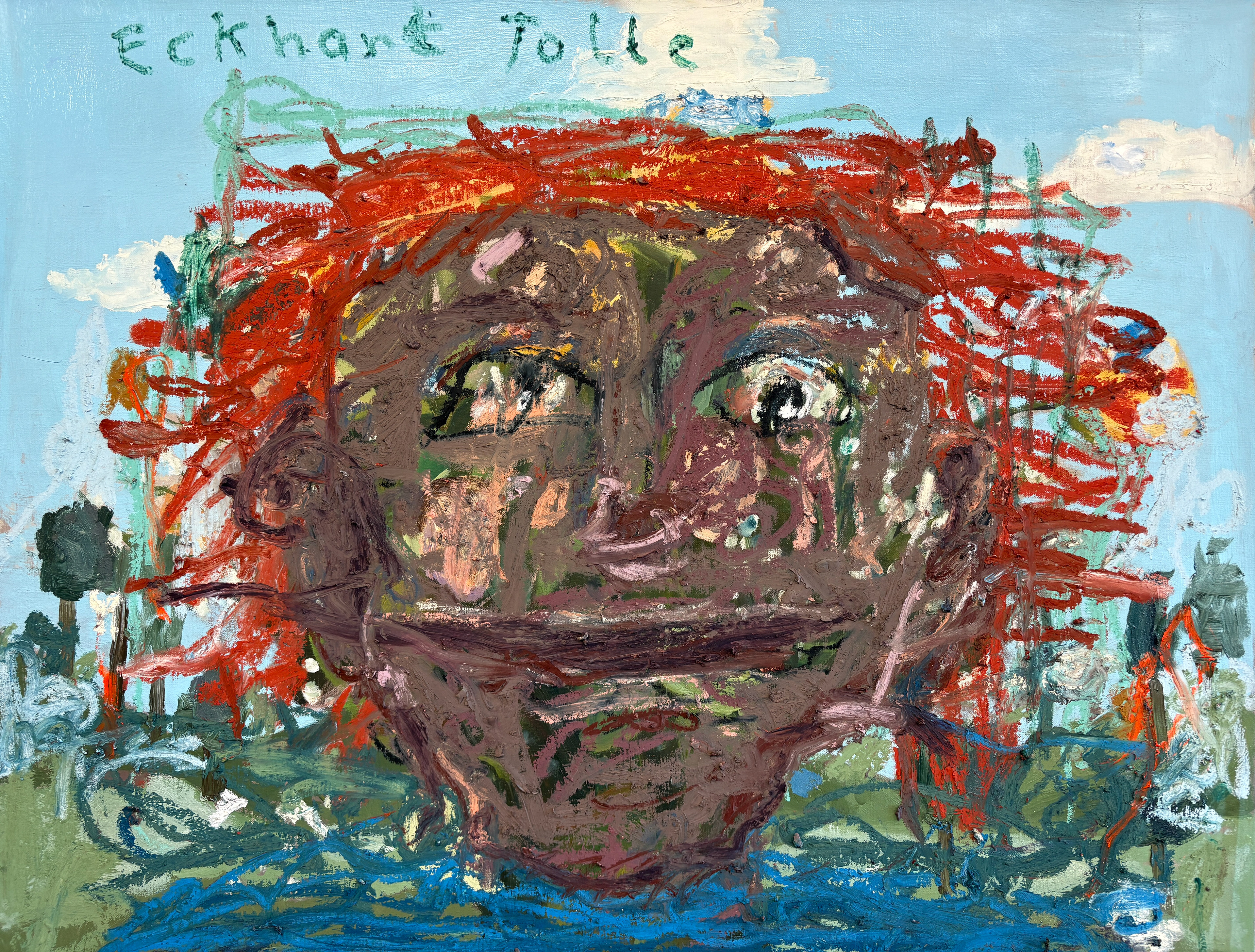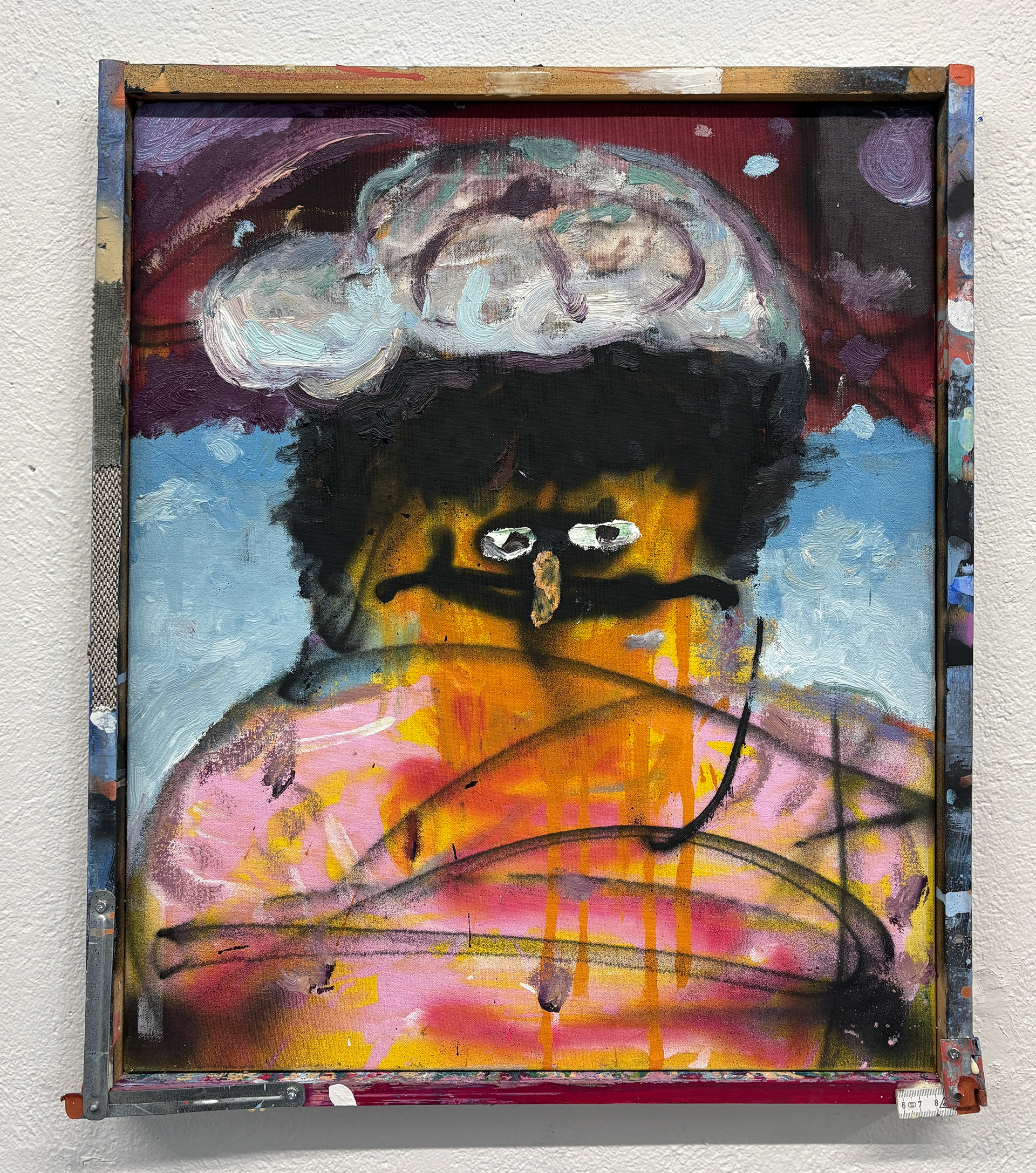 5 years old me 35 years later, oil and china marker on canvas, 2025